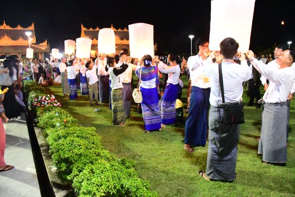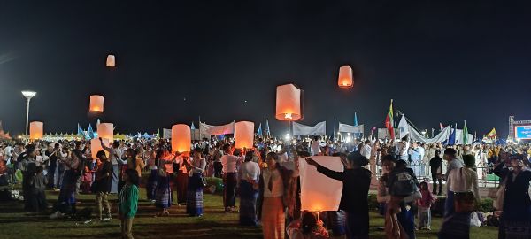 မာရဝိဇယဗုဒ္ဓရုပ်ပွားတော်မြတ်ကြီး တန်ဆောင်တိုင်ပွဲတော် မီးပုံးပျံလွှတ်တင် ပူဇော်ပြိုင်ပွဲတွင် တိုင်းရင်းသားလူမျိုးများရေးရာဝန်ကြီးဌာန ကိုယ်စားပြု "ပြည်ထောင်စုတိုင်းရင်းသား" စိန်နားပန်မီးပုံပျံလွှတ်တင်ပူဇော်ခြင်းမှတ်တမ်းဓာတ်ပုံများ (၂-၁၁-၂၀၂၅)